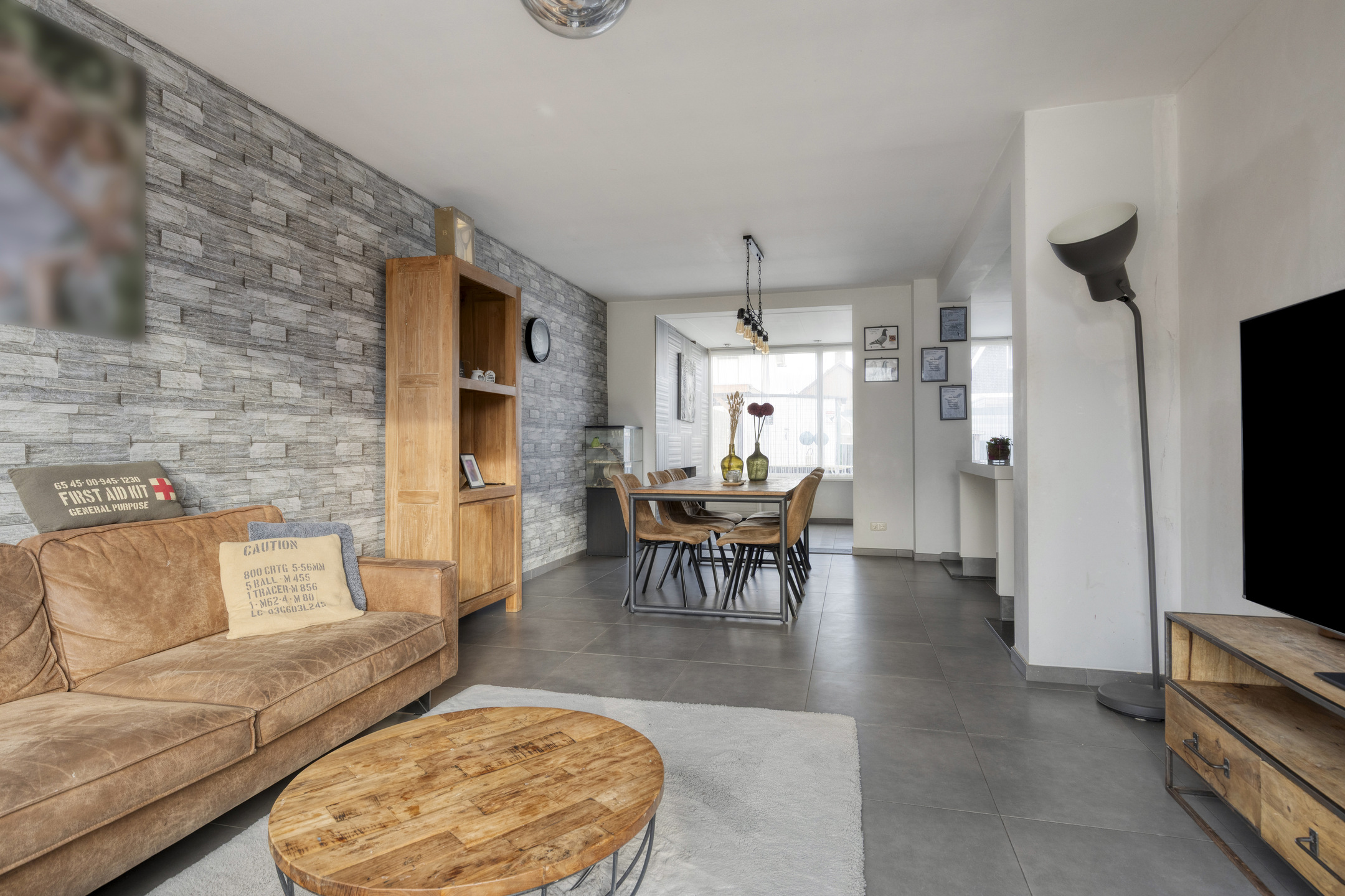 De woonkamer loopt naadloos over in de riante aanbouw, die dankzij een moderne cinewall met gashaard en grote raampartijen vol natuurlijk licht een sfeervolle en veelzijdige ruimte vormt. Voor extra comfort is er een airco aanwezig, ideaal om op warme dagen een aangename temperatuur te behouden. Hier is volop plek om te ontspannen, te spelen of samen met familie en vrienden te genieten van het comfort en de gezellige sfeer.