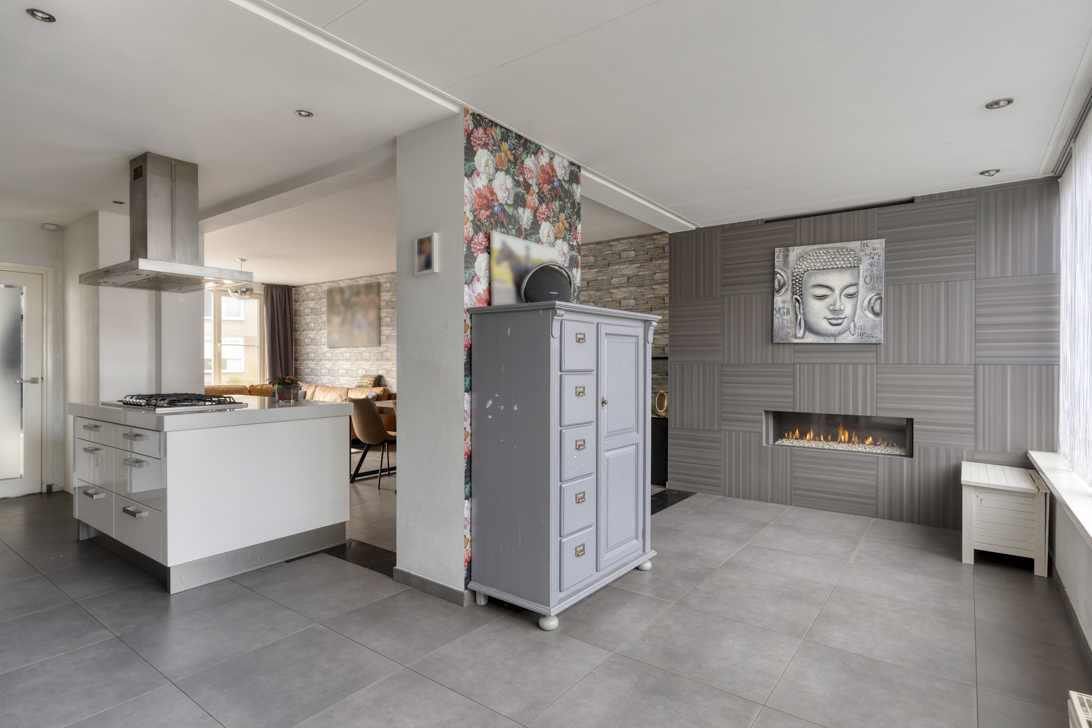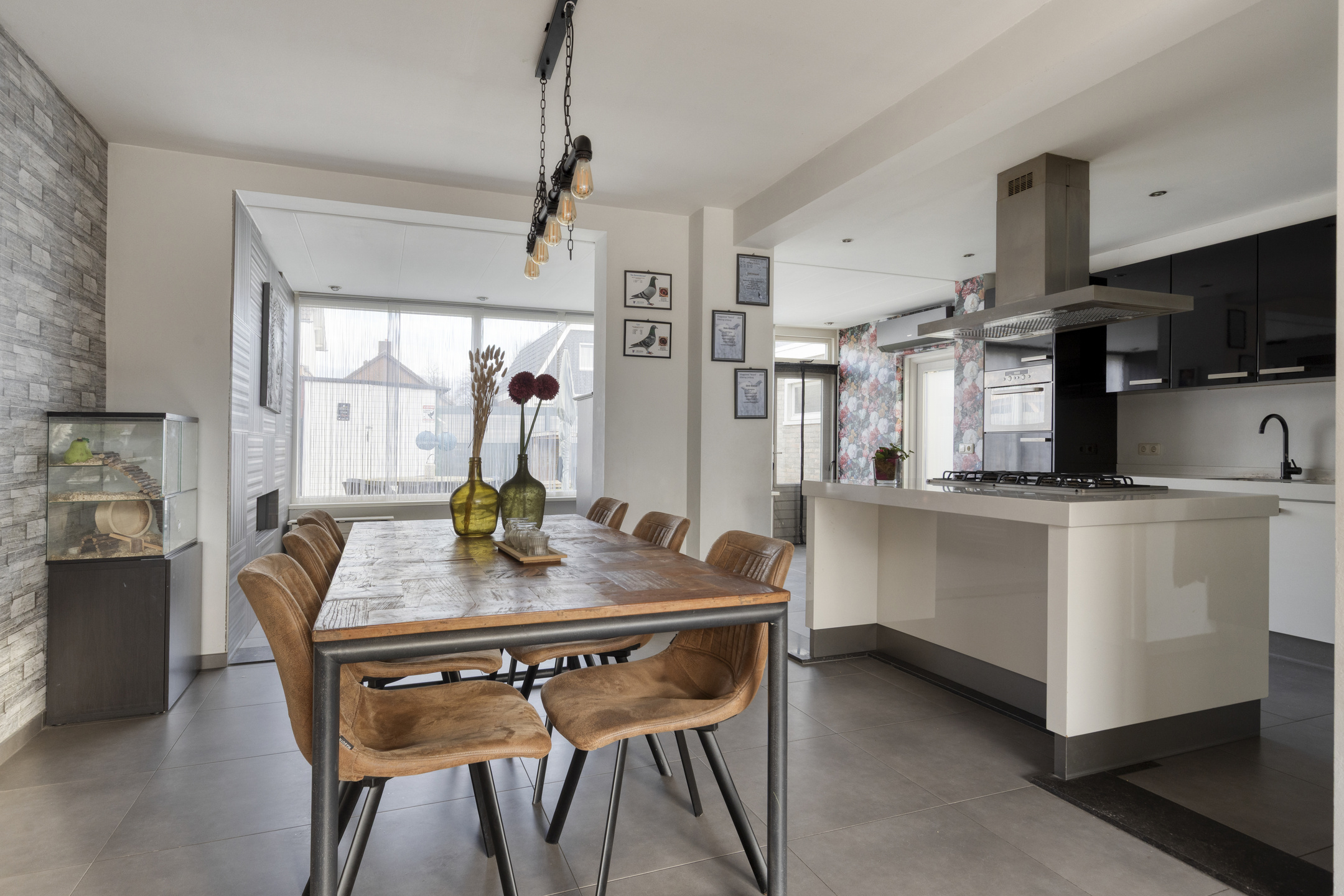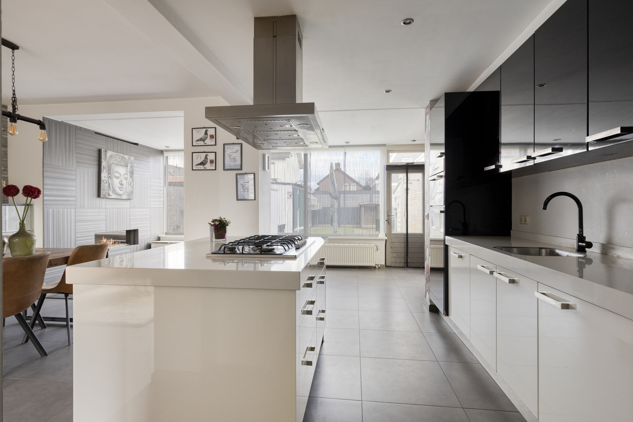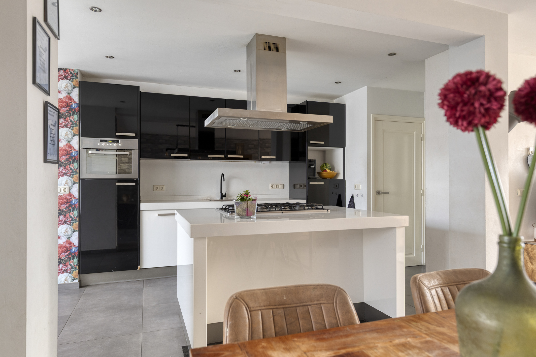 6-pits gaskookplaat, RVS-afzuigkap en moderne inbouwapparatuur, waaronder vaatwasser, combi-oven, koelkast een afzuigkap. Achter het kookeiland is plek voor een gezellige eet- of baropstelling , en vanuit de keuken is de praktische trapkast/provisieruimte makkelijk bereikbaar.