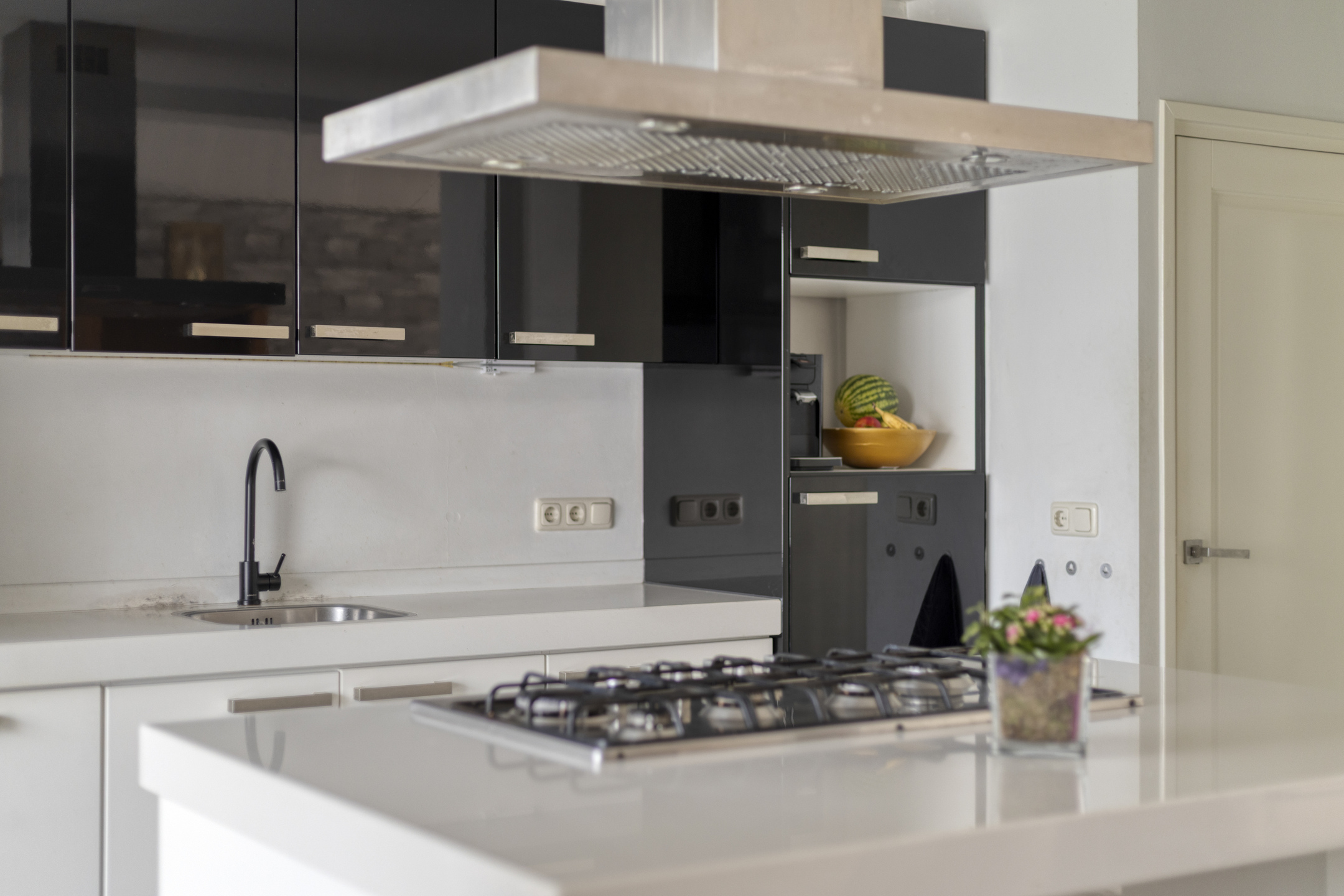 De open leefkeuken (2009) is een echte eyecatcher: voorzien van een kookeiland met composieten werkblad,