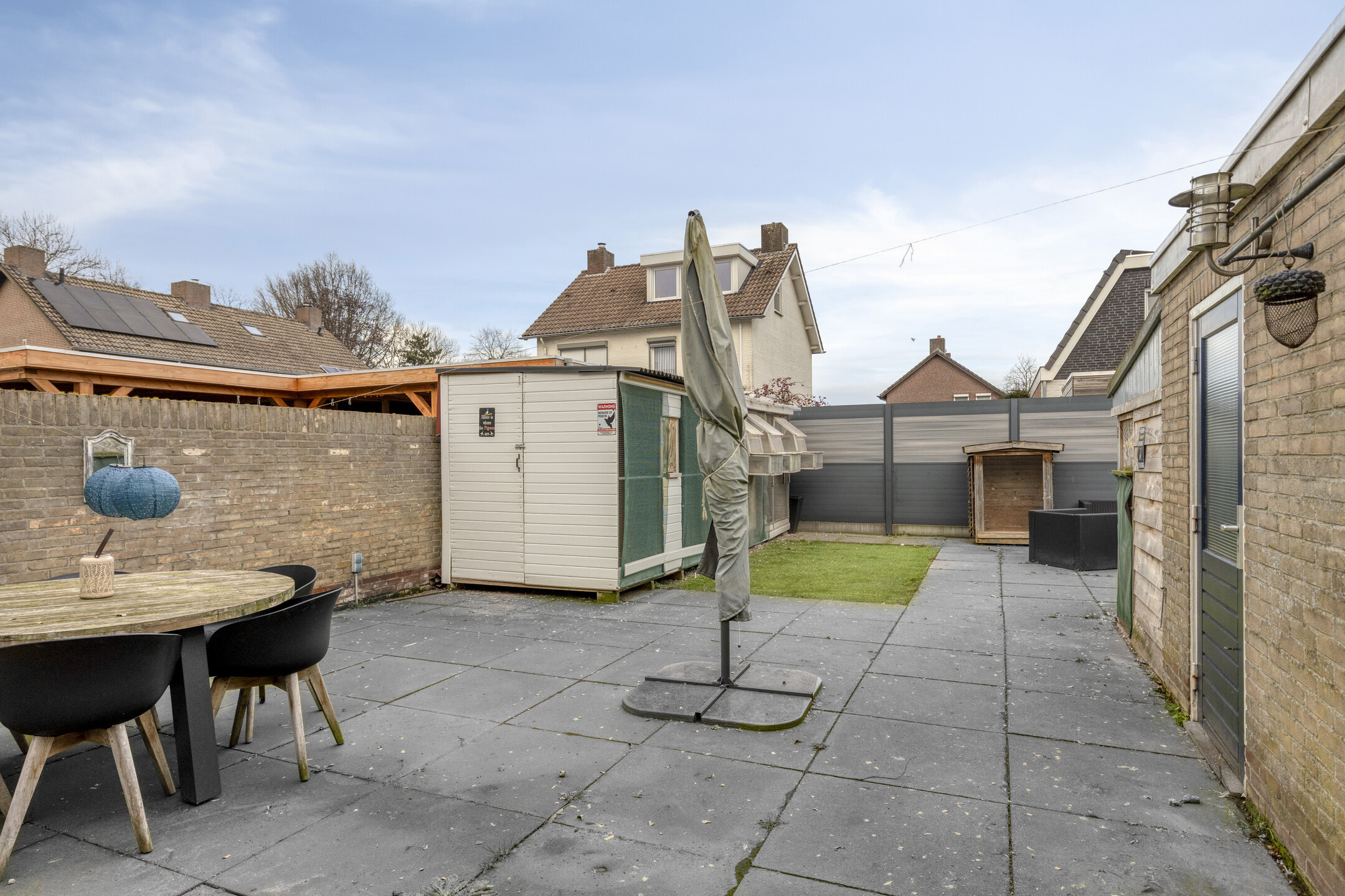 De achtertuin is gelegen op het oosten, volledig omsloten en biedt daardoor veel privacy. De tuin is onderhoudsvriendelijk aangelegd en beschikt over twee terrassen, waardoor er op verschillende momenten van de