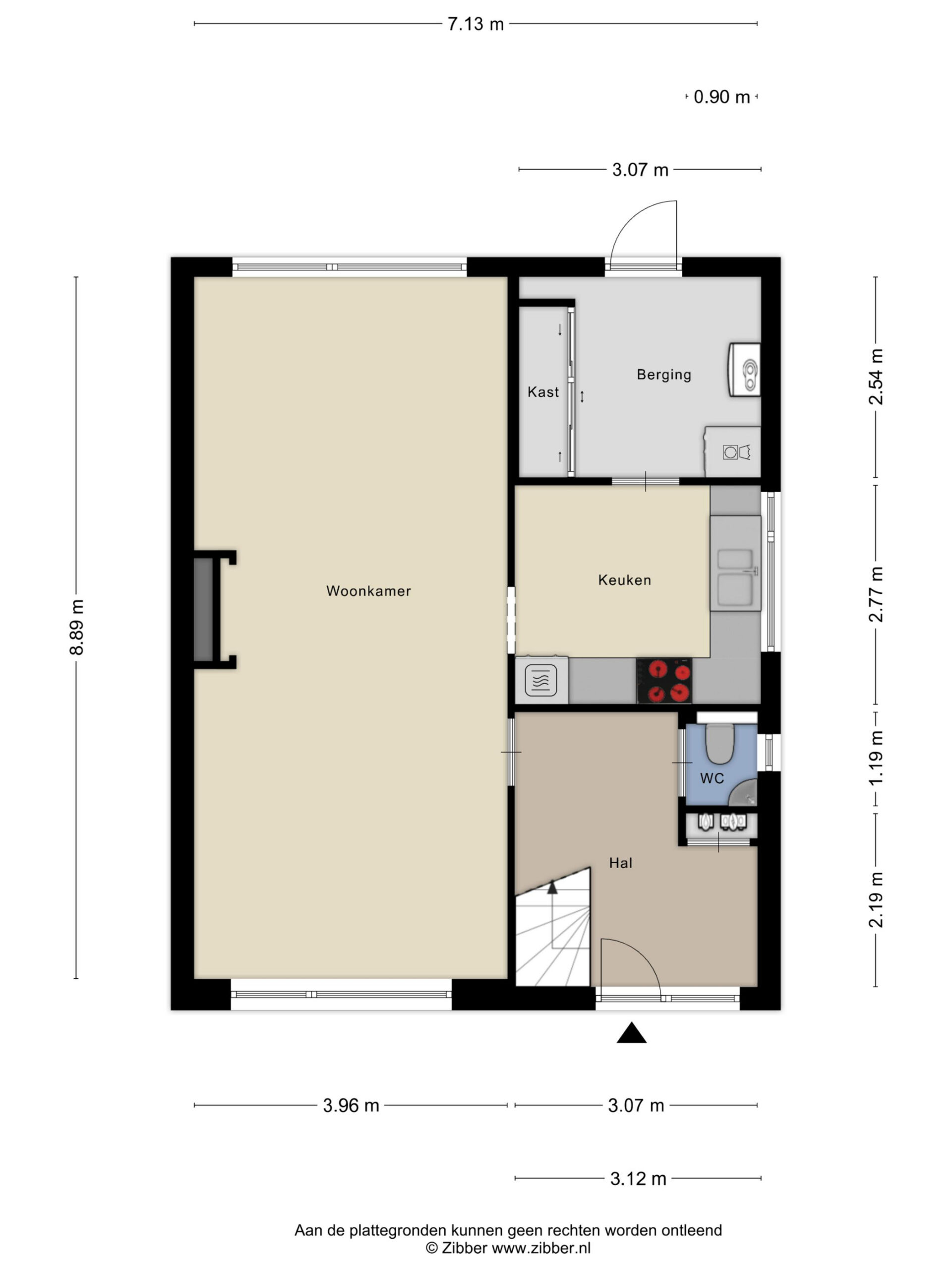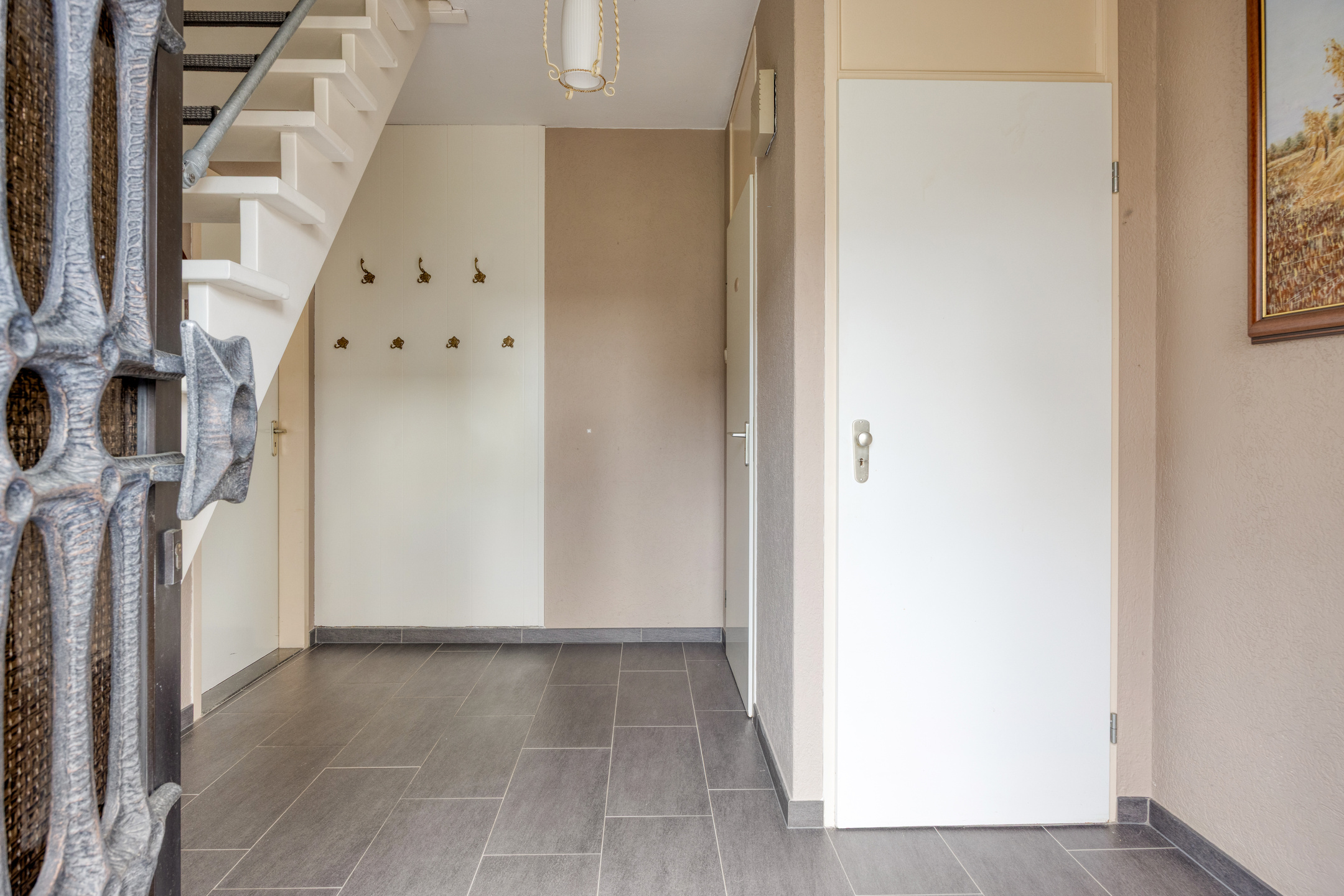Via de entree komt u in de hal met toegang tot het toilet, de meterkast, de trapopgang en de woonkamer.