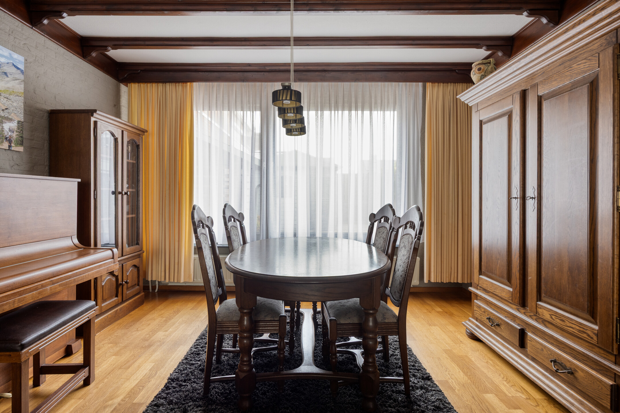 De royale woonkamer is voorzien van een warme eiken parketvloer en geniet van veel natuurlijke lichtinval.