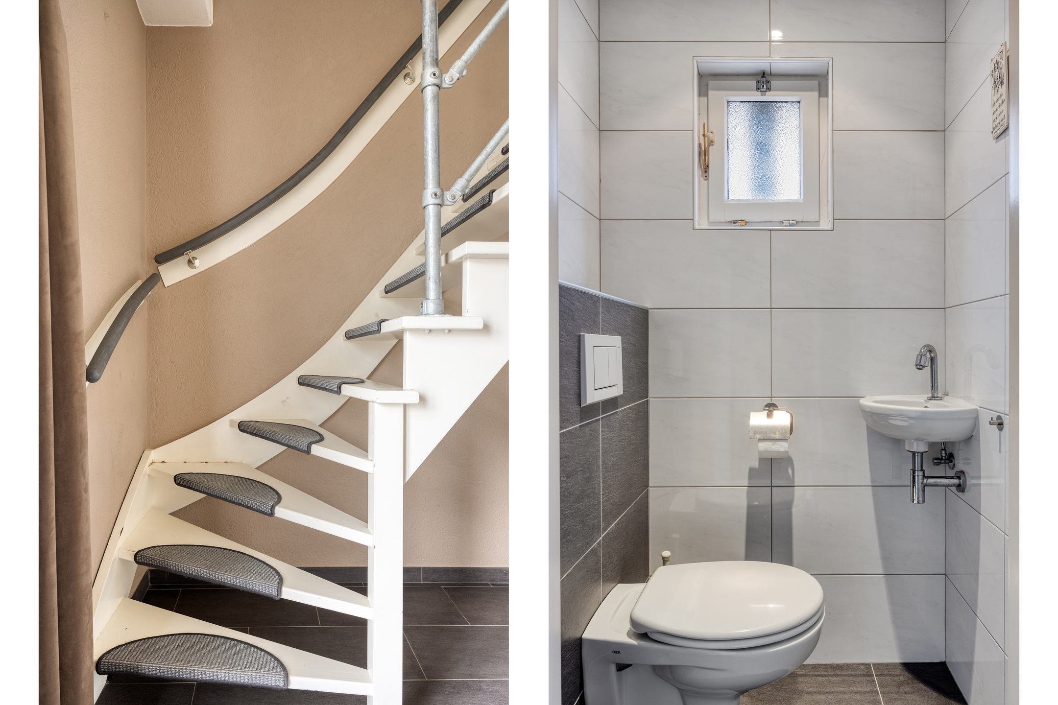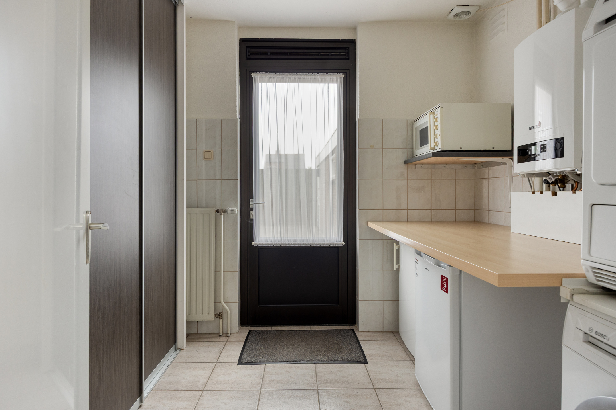 De bijkeuken/berging beschikt over aansluitingen voor wasmachine, droger en vaatwasser. Daarnaast zorgt een ingebouwde kast voor extra efficiënte bergruimte.