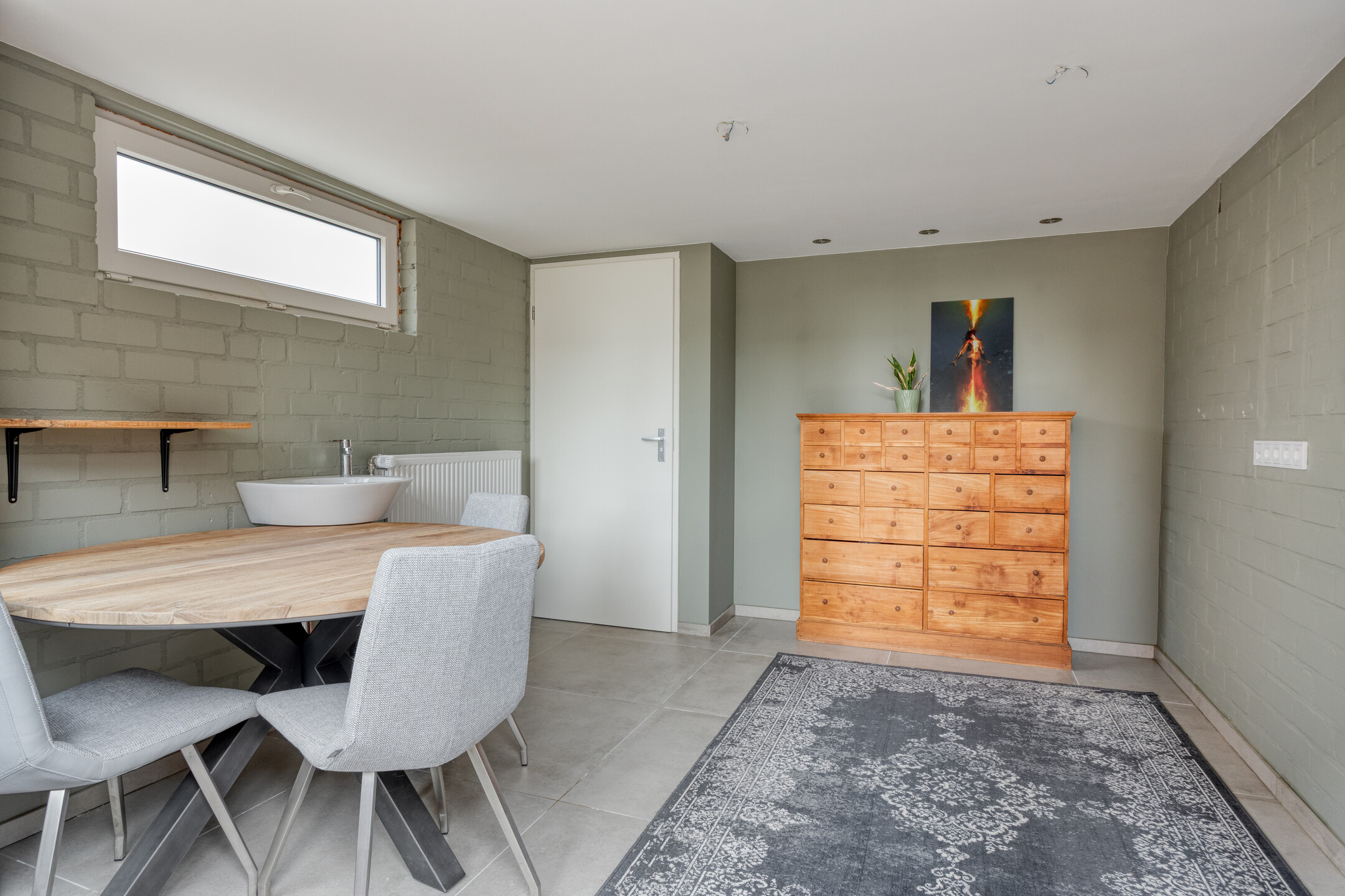 De voormalige garage is in 2017 opgesplitst in twee delen. Aan de achterzijde is een berging behouden, terwijl aan de voorzijde een multifunctionele ruimte is gerealiseerd. Deze ruimte beschikt over een eigen toilet, wastafel en verwarming en is daardoor geschikt voor uiteenlopende doeleinden, zoals een praktijk, kantoor aan huis, salon of hobbyruimte.
