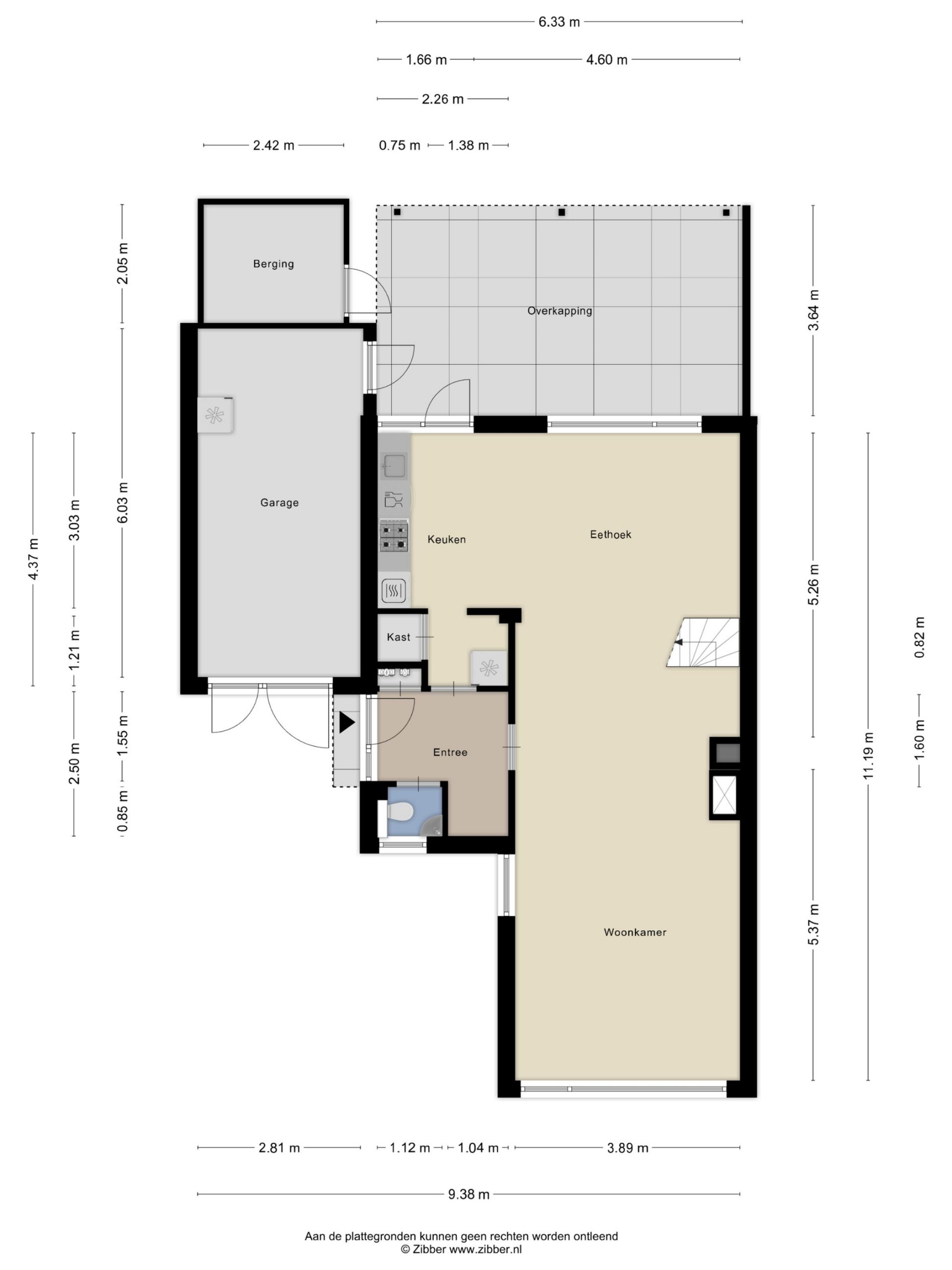 Bij binnenkomst komt u in de hal/entree met toegang tot het toilet, de meterkast, keuken en woonkamer.
