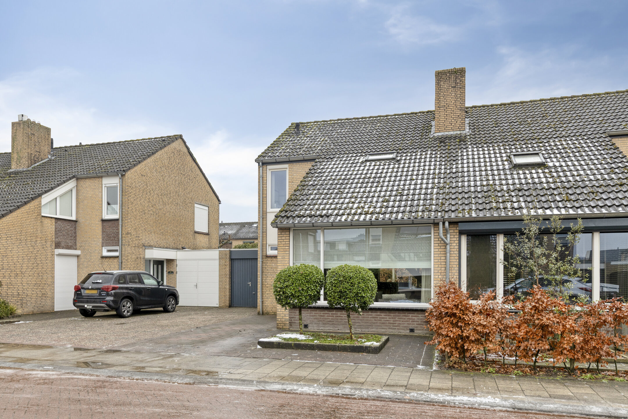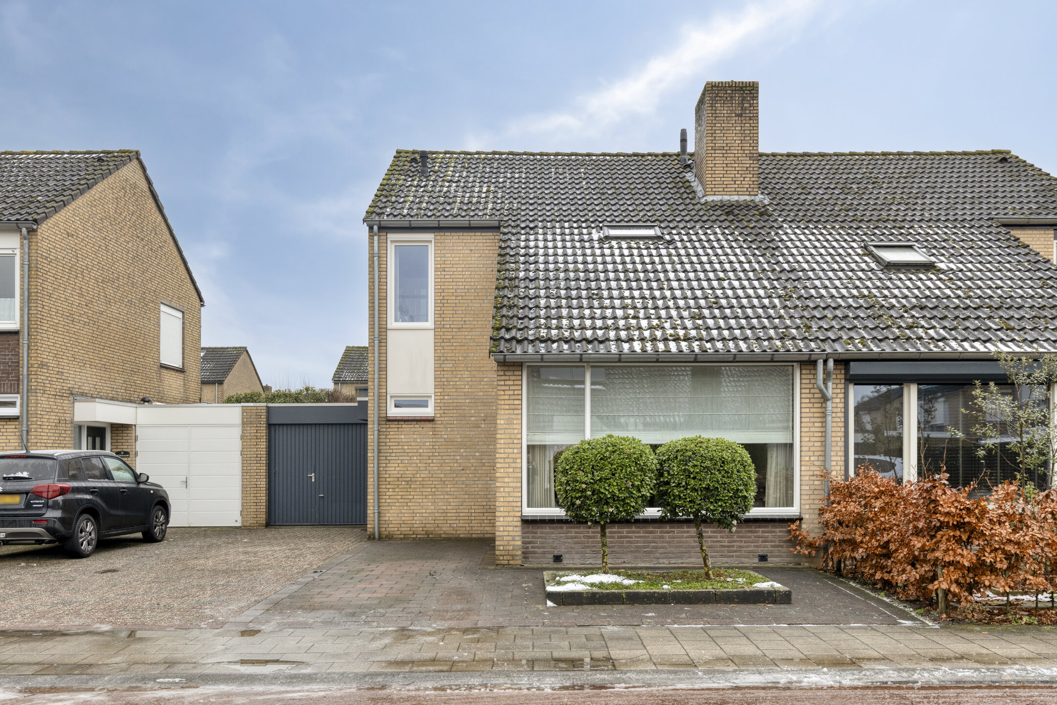 Aan de voorzijde van de woning bevindt zich een ruime oprit, waarop u meerdere voertuigen kunt parkeren.