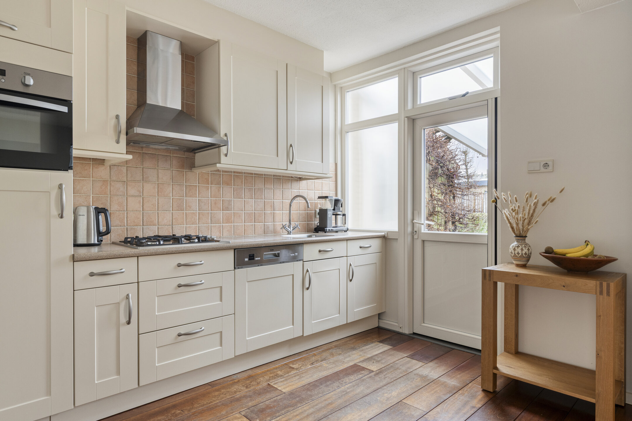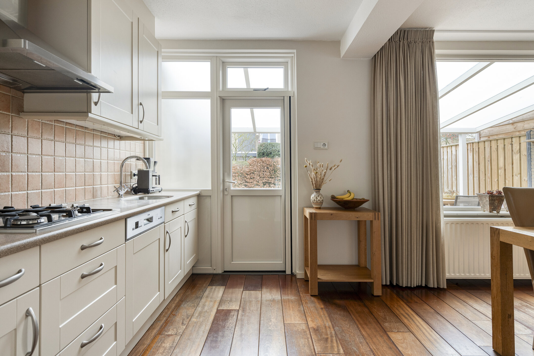 Vanuit de keuken heeft u direct toegang tot de tuin. Naast de keuken bevindt zich een praktische bergkast/extra ruimte, ideaal om een vriezer te plaatsen of opbergkasten te zetten. Deze ruimte biedt tevens toegang tot de entree/hal.