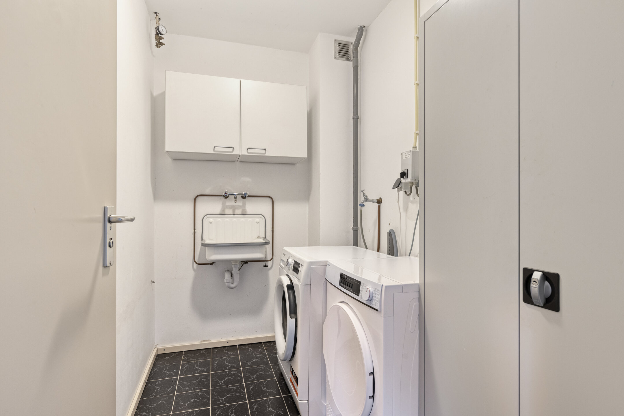 In de wasruimte/berging bevindt zich de aansluiting voor het witgoed alsmede een uitstortgootsteen.